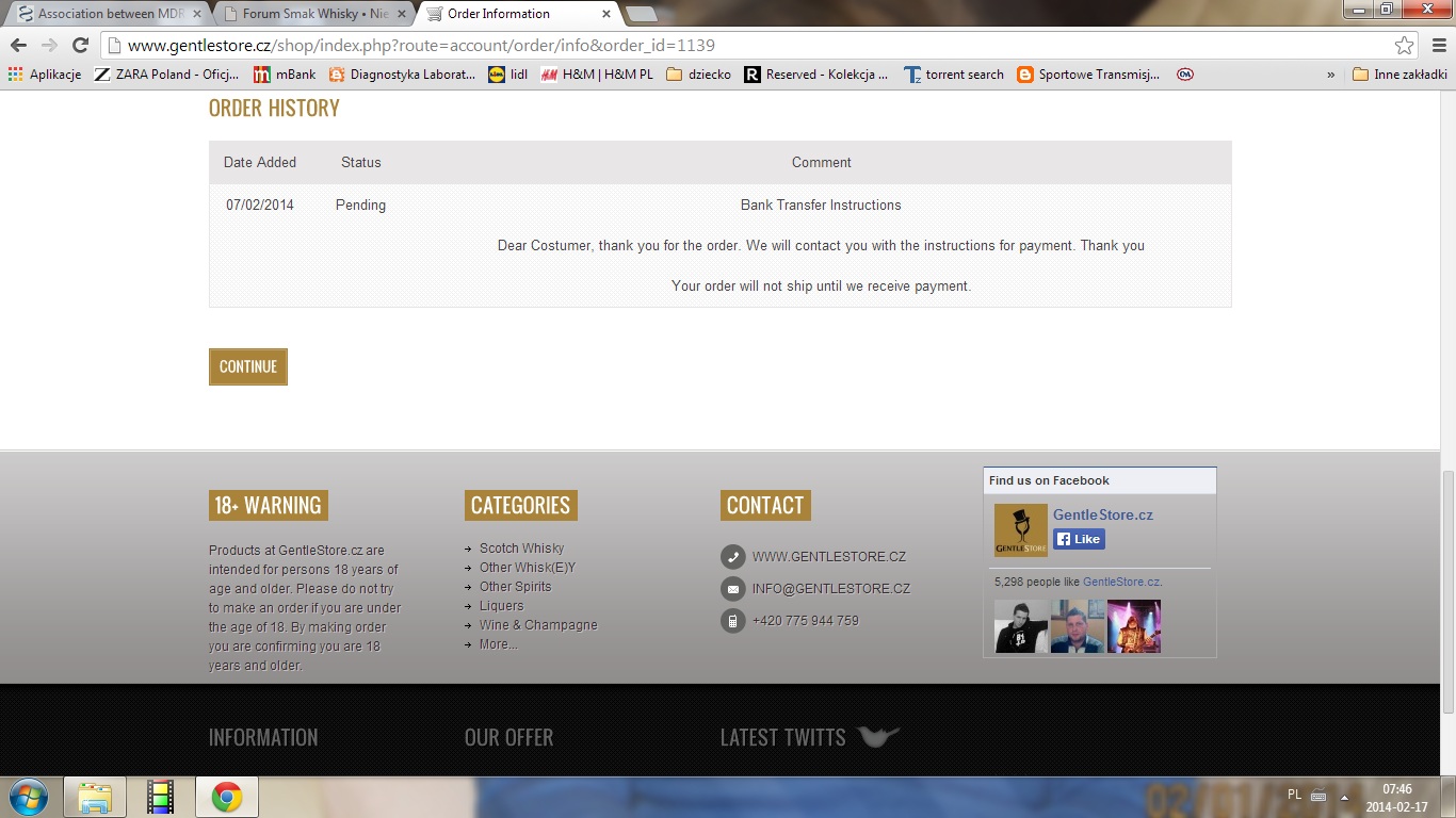 Taką informację dostałem po zamówieniu